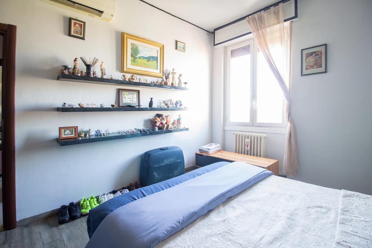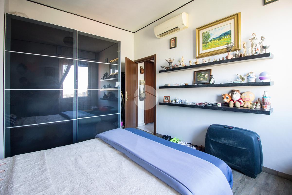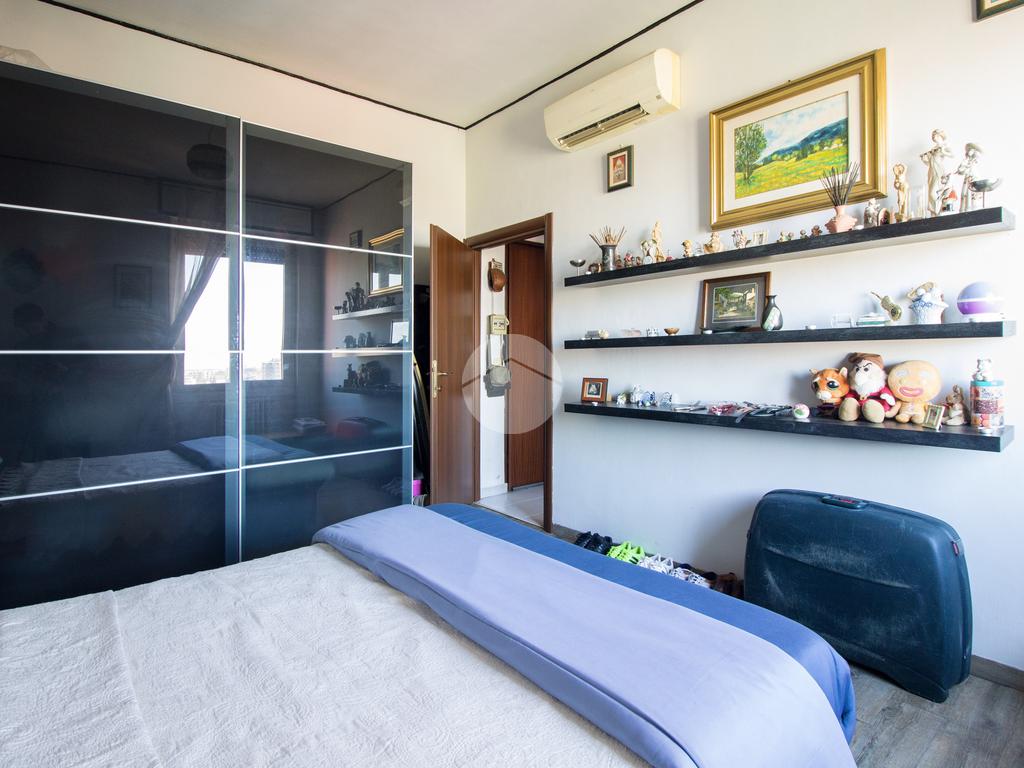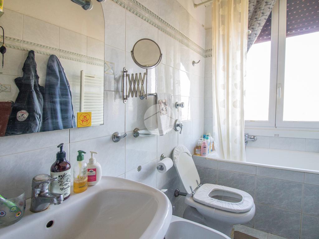Ritornando nel disimpegno si accede alla zona notte: il bagno, finestrato e dotato di vasca, offre comfort e praticità; la camera matrimoniale, di comoda metratura, conquista per la pavimentazione effetto legno che dona calore ed eleganza all’ambiente, rendendolo accogliente e raffinato.